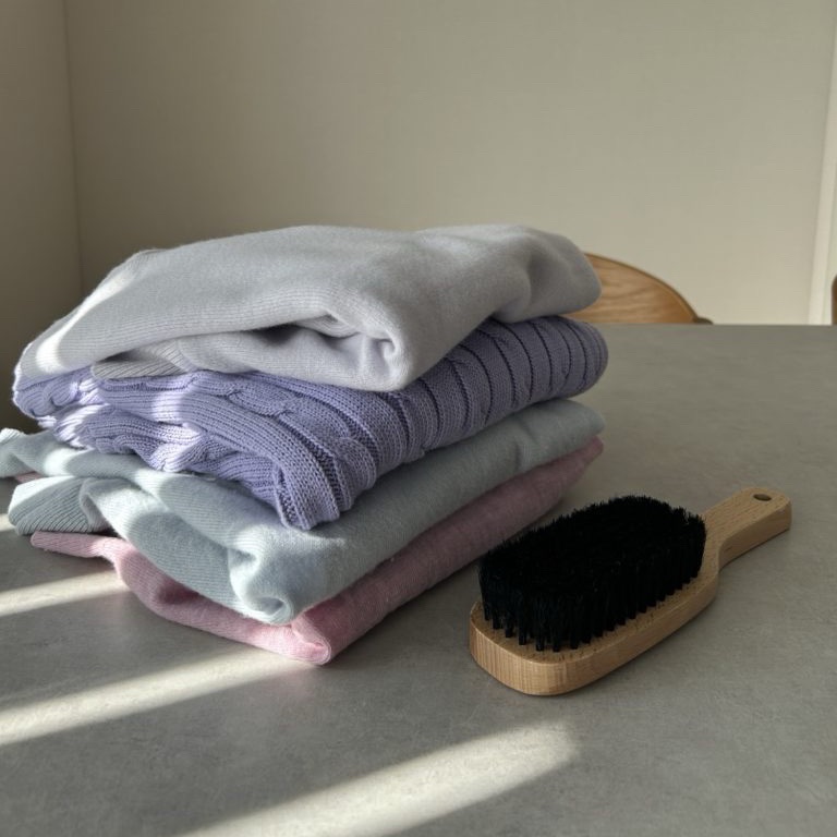 お気に入りのニットは、一回着たらブラシで整えてお手入れ。